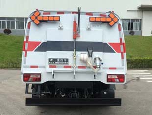 可选装后上喷雾、后下喷雾、后部作业指示灯、自动绞盘、箱体新涂装。专用装置代替侧防护,后防护装置材料材质:Q235B,连接方式:螺栓联接,断面尺寸(宽赘?mm:46?60,离地高度:330 mm。随底盘选装前照灯,选装新前脸,前雾灯可选择取消;ABS型号/生产厂家:VIE ABS-Ⅱ/浙江万安科技股份有限公司。该车通过清扫机构,采用吸扫结合,湿式除尘的工作原理对路面进行清扫作业。 |