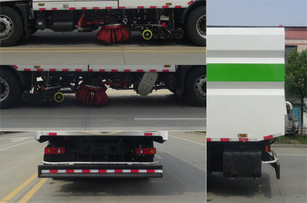 随底盘选装驾驶室。选装污水箱后部可视窗口样式,侧面防护装置为专用装置,后防护采用碳钢:Q235;焊接连接,后部防护断面尺寸(mm):230?0,后部防护离地高度(mm):350;仅采用:4700,5000,5300mm轴距底盘;整车长/轴距/前悬/后悬对应关系为(mm):8300/4700/1430/2170,8600/5000/1430/2170,8900/5300/1430/2170.ABS型号/生产厂家:3631010-C2000/东科克诺尔商用车制动系统(十堰)有限公司,ABS 8/东科克诺尔商用车制动系统(十堰)有限公司, 4460046450/威伯科汽车控制系统(中国)有限公司。专用功能:扫路,路面清洗;专用装置:扫刷,吸盘。 |