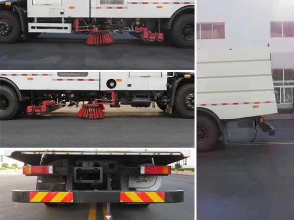 | 车辆专用装置由清扫装置,抽吸装置,垃圾箱及冲水系统等组合而成.用于城市道路,高速公路,机场,码头,广场,隧道,桥梁等路面的机械化清扫,洗扫,喷雾降尘等保洁作业.仅选用5600mm轴距.随底盘选装前雾灯.选装驾驶室.选装遮阳罩.选装前格栅造型及灯具.选装侧窗.选装后尾灯.前悬(mm)/长度(mm)对应关系为:1400/9425,1475/9500,1430/9455.选装箭头式作业指示灯.选装新式车辆外部标识牌.选装新式盘管器.选装导流板.装备ABS,型号/生产厂家:3631010-C2000/东科克诺尔商用车制动系统(十堰)有限公司,ABS 8/东科克诺尔商用车制动系统(十堰)有限公司,ABS-E 4S/4M/威伯科汽车控制系统(中国)有限公司.车辆侧面防护装置的材料材质为铝合金,连接方式均为螺栓连接.后下部防护装置的材料材质为Q235钢,连接方式为焊接,断面尺寸(mm)为80?60,最大离地高度为420mm. |