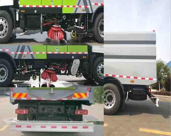 1、专用装置:垃圾箱体,扫刷装置组成,为城市道路洗扫专用车;2、防护材料:Q235A,左右侧面防护由专用装置(扫刷)代替, 离地高度为(mm):200,后下部防护与车架采用焊接连接,后下部防护尺寸:60?30(mm),离地面高度400mm;3、.随底盘选装驾驶室;选装箱体外形;4、ABS型号/生产厂家:3631010-C2000/东科克诺尔商用车制动系统(十堰)有限公司,ABS 8/东科克诺尔商用车制动系统(十堰)有限公司, 4460046450/威伯科汽车控制系统(中国)有限公司.5、整车长/前悬/轴距/后悬对应关系为(mm):8850/1400/5300/2150,8550/1400/5000/2150,8250/1400/4700/2150,8050/1400/4500/2150,7500/1400/3950/2150,7350/1400/3800/2150,8850/1430/5300/2120,8550/1430/5000/2120,8250/1430/4700/2120,8050/1430/4500/2120,7500/1430/3950/2120,7350/1430/3800/2120;6、整备/载质量/驾驶室准乘人数(kg/kg/人):11730/6140/2,11730/6075/3;12460/5410/2,12460/5345/3;选用轴距(mm)3800,3950,4500时整备质量为11730kg,选用轴距(mm)4700,5000,5300时整备质量为12460kg |