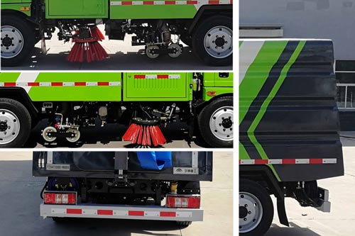 1.储能装置种类/生产企业:磷酸铁锂蓄电池/宁德时代新能源科技股份有限公司。2.可在全国销售。3.左右侧防护装置与工作装置(吸嘴,扫刷等)相干涉,故豁免。后下部防护装置材质为QStE700TM,与车架采用螺栓连接,截面尺寸为120?0(mm),离地高度为340mm。4.ABS型号/生产厂家:BTL 24V ABS/芜湖伯特利电子控制系统有限公司、YF8/武汉元丰汽车电控系统有限公司。5.可选装箱体顶部加水口、后爬梯、后门液压管路布置、前部摄像头、挡帘结构、不同外观脚轮、不同外观吸盘结构、不同外观侧喷杆结构。6.可取消顶部吊环、侧面摄像头。7.随底盘选装不同外观驾驶室和后视镜。8.当选装箱体顶部加水口时对应整车高度为2500mm。9.该车装有箱体和洗扫装置,用以道路,厂(场)区的洗扫作业。 |