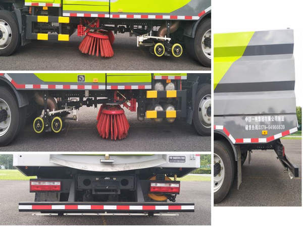 该车专用装置由垃圾箱、抽吸盘和洗扫机构等装置组成,用于道路的洗扫保洁作业.选用4700mm轴距。车辆侧面防护装置由扫刷、吸盘及部分防护组成;侧、后防护装置材料为Q345A,与车身连接方式为螺栓连接,后防护断面尺寸(mm)为120?0,最大离地高度为360mm.随底盘安装的ABS型号/生产企业:CM4XL-4S/4M /广州瑞立科密汽车电子股份有限公司.该车电池种类/型号/生产企业:磷酸铁锂电池/ L202D02/宁德时代新能源科技股份有限公司;驱动电机类型/型号/生产企业:永磁同步电机/ TZ380XSTY842/武汉理工通宇新源动力有限公司,电机额定功率为80kW,峰值功率为160kW,电机控制器型号/生产企业:KTZ54X36STY60/武汉理工通宇新源动力有限公司;整车控制器型号/生产企业: WTPCM1-1 /武汉理工通宇新源动力有限公司;后部选装上喷杆喷淋,选装四扫盘及吸盘后移机构;该车技术阶段为"发展期",可在全国销售.
