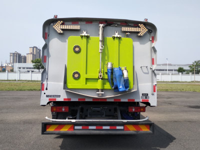 | 该车专用装置由垃圾箱、吸盘和洗扫机构等装置组成,用于道路的洗扫保洁作业.选用5300mm轴距.车辆侧面防护装置由扫盘,吸盘及部分防护组成;侧、后防护装置材料为Q345A,与车身连接方式为螺栓连接,后防护断面尺寸(mm)为240?0,最大离地高度为480mm;随底盘选装驾驶室外观;后部选装上喷杆喷淋;选装四扫盘及吸盘后移机构;随底盘安装的ABS型号/生产企业:J ABS/焦作博瑞克控制技术有限公司.该车电池种类/型号/生产企业:磷酸铁锂电池/6LH3L8/宁德时代新能源科技股份有限公司;驱动电机类型/型号/生产企业:永磁同步电机/TZ370XS-LKM1101,TZ370XS-LKM1103/苏州绿控传动科技有限公司,电机额定功率为80kW,峰值功率为160kW,电机控制器型号/生产企业:KTZ54X45S-LKC1101,KTZ54X,59S-GVD55050/苏州绿控传动科技有限公司,深圳市英威腾电动汽车驱动技术有限公司;整车控制器型号/生产企业:3600010-C1B00/东风商用车有限公司.该车技术阶段为"发展期",可在全国销售. |