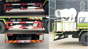 | 专用装置为抑尘雾炮,用于城市抑尘.整车长/轴距/前悬/后悬对应关系为(mm):8900/4500/1475/2925;8900/4500/1515/2885;8950/4700/1475/2775;8950/4700/1515/2735;7985/3950/1475/2560;7375/3600/1475/2300;9500/5100/1475/2925.侧面防护材料:Q235A碳钢.连接方式:左右侧面采用螺栓连接.后防护装置材料:Q235A碳钢.连接方式:采用焊接连接.后部防护断面尺寸(mm):120?0,后部防护离地高度(mm):440.ABS生产厂家:东科克诺尔商用车制动系统(十堰)有限公司, 浙江万安科技股份有限公司,型号:3631010-C2000, VIE ABS-Ⅱ.随底盘选装驾驶室.选装不同罐体样式,选装不同雾炮样式. |