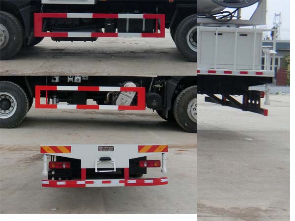 侧防护采用冷弯型钢/Q235,螺栓连接。后防护采用冷弯型钢/Q235,焊接连接。后防护截面高度尺寸120mm,截面宽度尺寸50mm,下边缘离地高度450mm。ABS型号及生产厂家为:3631010-C2000/东科克诺尔商用车制动系统(十堰)有限公司,J ABS/焦作博瑞克控制技术有限公司;该车用途为抑尘降霾,主要装置为水罐及喷雾装置。仅采用4350+1350轴距底盘。选装后平台样式,外观样式,左右出水口及附件位置。选装外观样式。选装左右进出水及附件位置。 |