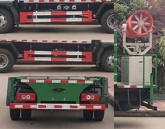 | 选装驾驶室前脸;选装箱体两侧不开窗结构;.选装侧部箱体结构及后部平台结构;侧防护材料Q235B,螺栓连接;后防护材料Q235B,焊接连接,后部防护断面尺寸(mm):100?0,离地高度(mm):400;ABS系统控制方式为4S/4M,ABS系统控制器型号为CM4XL-4S/4M,ABS系统控制器生产企业为广州瑞立科密汽车电子股份有限公司;该车主要装置是水箱和喷雾机,用于降低空气中的灰尘,雾霾等现象. |