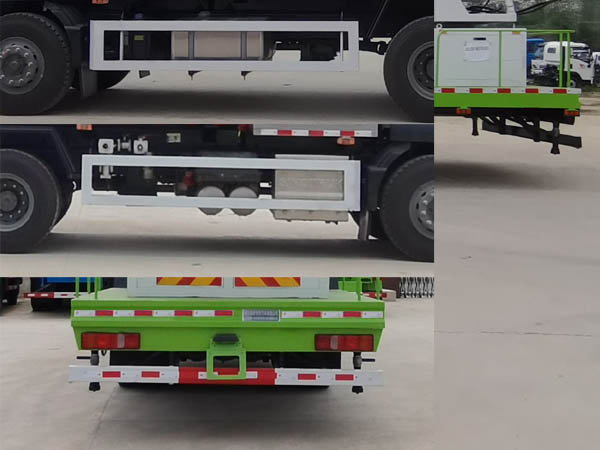 随底盘选装驾驶室,选装喷雾装置。侧防护采用冷弯型钢/Q235,螺栓连接。后防护采用冷弯型钢/Q235,焊接连接。后防护截面高度尺寸120mm,截面宽度尺寸50mm,下边缘离地高度500mm。ABS系统控制器生产企业/型号为威伯科(上海)管理有限公司/4460046300;选装EBS,EBS系统控制器生产企业/型号为威伯科(上海)管理有限公司/EBS3。该车用途为抑尘降霾,城市抑尘,主要装置为水罐及喷雾装置.整车长/轴距/前悬/后悬/后伸对应关系为(mm):10625/3900+1350/1450/3225/700,10625/3875+1400/1450/3200/700,11025/4300+1350/1450/3225/700,11025/4275+1400/1450/3200/700,11245/4300+1350/1450/3225/920,11245/4275+1400/1450/3200/920,11545/4600+1350/1450/3225/920,11545/4575+1400/1450/3200/920,11725/5000+1350/1450/3225/700,11725/4975+1400/1450/3200/700. |