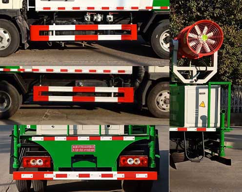 | 选装驾驶室前脸;选装后部平台结构;选装箱体两侧侧窗结构;选装箱体两侧不开窗结构;侧防护材料Q235B,螺栓连接;后防护材料Q235B,焊接连接,后部防护断面尺寸(mm):120?0,离地高度(mm):400;ABS系统控制方式为4S/4M,ABS系统控制器型号为CM4XL-4S/4M,ABS系统控制器生产企业为广州瑞立科密汽车电子股份有限公司;该车主要装置是水箱和喷雾机,用于降低空气中的灰尘,雾霾等现象. |