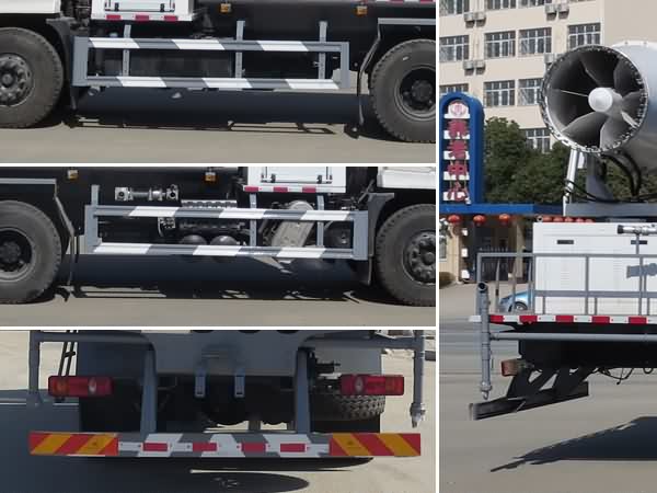 | 随底盘选装排气管不同安装位置,随底盘选装驾驶室,仅采用(mm)4350+1350轴距;主要专用装置有喷雾机,用于城市抑尘;ABS型号/生成厂家:3631010-C2000/东科克诺尔商用车制动系统(十堰)有限公司,侧面防护装置材料材质:Q235,连接方式:螺栓连接;后下部防护装置材料材质:Q235,连接方式:螺栓连接;断面尺寸(宽赘?(mm):50?20,离地高度480mm. |