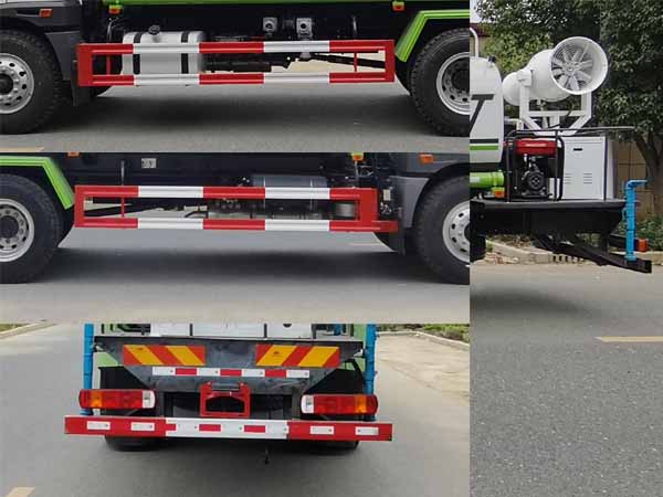 | 随底盘选装驾驶室。选装喷雾装置。仅采用4500mm轴距底盘。侧防护采用/Q235,螺栓连接。后防护采用Q235,焊接连接。后防护截面高度尺寸120mm,截面宽度尺寸50mm,下边缘离地高度500mm。ABS生产厂家/型号:浙江万安科技股份有限公司/VIE ABS-II;该车用途为抑尘降霾,主要装置为水罐及喷雾装置。 |