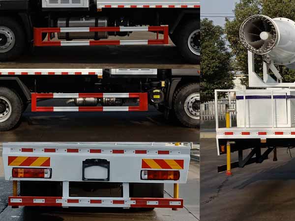 | 选装前部LOGO及前部格栅风格;选装后部喷雾机样式;该车用途为抑尘降霾,主要装置为水箱及喷雾装置;仅采用4500mm轴距;侧防护材料Q235,螺栓连接;后防护装置材料为Q235,焊接连接,断面尺寸为:120?0(mm),离地高度为:450(mm);ABS型号为CM4XL-4S/4M,生产厂家为广州瑞立科密汽车电子股份有限公司. |