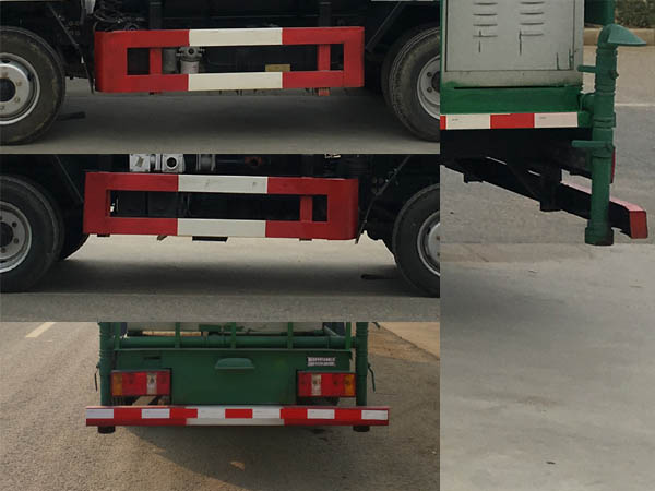 侧防护采用Q235,螺栓连接。后防护采用Q235,焊接连接。后防护截面高度尺寸100mm,截面宽度尺寸50mm,下边缘离地高度350mm。ABS型号:CM4YK,ABS生产企业:广州瑞立科密汽车电子股份有限公司。该车用途为抑尘降霾,主要装置为水罐及喷雾装置。整车长度与轴距和后悬对应关系:5330/2600/1630,5680/2800/1780.选装后平台样式及罐体外观样式。选装左右进出水口及附件位置。 |