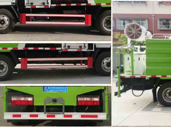| 随底盘选装驾驶室.侧防护及后下部防护装置均采用Q235A材质,均采用焊接连接,后下部防护尺寸:50?20(mm),离地面高度390mm;ABS厂家及型号:襄阳东风隆诚机械有限责任公司/ABS /ASR -12V-4S/4M.专用装置为抑尘雾炮,用于矿场,露天堆场及爆破现场等的喷雾抑尘.整车长/轴距/后悬对应关系为(mm):6400/3308/2037,5905/2950/1900,5455/2700/1700. |