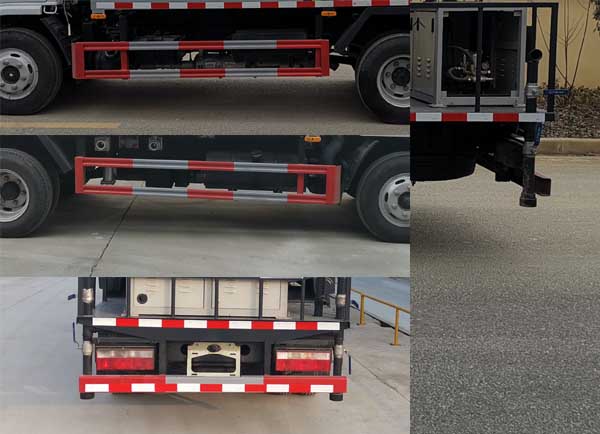 | 随底盘选装前面罩,前保险杠,前组合灯具。采用3308mm轴距底盘。侧防护采用Q235,螺栓连接。后防护采用Q235,焊接连接。后防护截面高度尺寸100mm,截面宽度尺寸50mm,下边缘离地高度450mm;ABS厂家及型号:襄阳东风隆诚机械有限责任公司/ABS/ASR-12V-4S/4M;该车主要装置是喷雾装置,用于降低空气中的灰尘,雾霾等现象.选装后平台结构,外观样式及选装左右出水口附件位置。 |