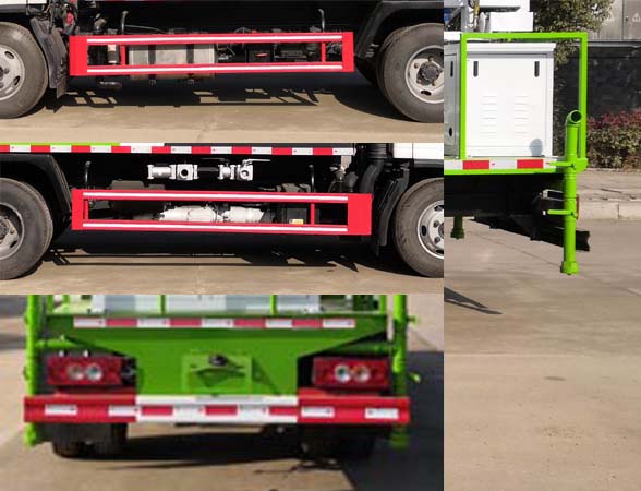 | 随底盘选装前围及前部灯具。选装侧面卷帘门结构和后部平台结构。侧防护采用Q235,螺栓连接。后防护采用Q235,焊接连接。后防护截面高度尺寸100mm,截面宽度尺寸50mm,下边缘离地高度450mm;ABS系统控制器型号/生产企业:ABS-E/威伯科汽车控制系统(中国)有限公司,ABS-VI稥/广州瑞立科密汽车电子股份有限公司.;该车主要装置是喷雾装置,用于降低空气中的灰尘,雾霾等现象.选装车辆外观结构样式。 |