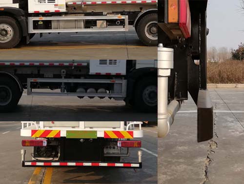 | 专用装置由箱体、喷雾抑尘装置等组成,用于城市道路、广场、工地等场所的喷雾降尘等作业;仅采用轴距为:4600+1350mm;仅选用钢板弹簧;选装不同喷雾机,A.120型喷雾机整车长11120mm,后悬3150mm,后伸590mm;B.100型喷雾机整车长10760mm,后悬2600mm,后伸780mm;C.80型和M08型喷雾机整车长10600mm,后悬2600mm,后伸620mm;D.M12型喷雾机整车长11820mm,后悬3150mm,后伸1290mm;E.M10型喷雾机整车长11025mm,后悬2600mm,后伸1045mm;选装喷雾机样式;喷雾机厂家/型号:广东风华环保设备股份有限公司/(3WD2000-120,3WD2000-100,3WD2000-80),山东华力机电有限公司/(TDM-M12,TDM-M10,TDM-M08);专用装置:风送式喷雾机;侧后防护装置材料均为:Q235,侧防护装置与车架连接方式为螺栓连接,后防护装置与车架连接方式为焊接;后防护装置截面尺寸为:120?8mm,离地高度480mm;ABS系统控制器生产企业/型号为威伯科(上海)管理有限公司/4460046300;随底盘选装EBS,EBS系统控制器生产企业/型号为威伯科(上海)管理有限公司/EBS3. |
