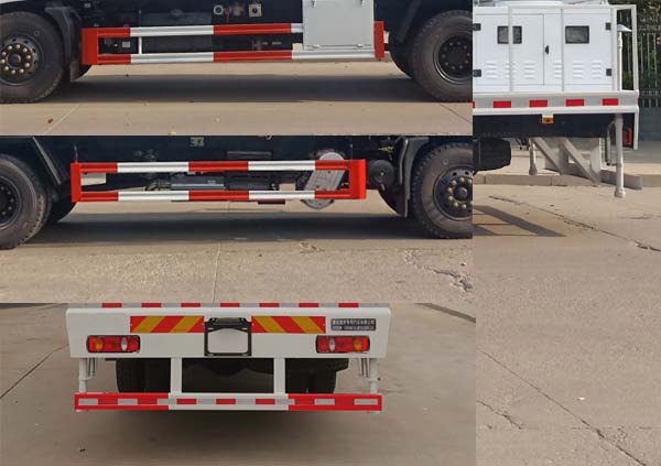 | 随底盘选装驾驶室;选装后雾炮装置。侧防护材料Q235,螺栓连接;后防护装置材料为Q235,焊接连接,截面尺寸为:120?0(mm),离地高度为:450(mm);整车长/轴距(mm)对应关系:8800/4500,9000/4700; ABS型号/生产厂家:3631010-C2000/东科克诺尔商用车制动系统(十堰)有限公司,ABS 8/东科克诺尔商用车制动系统(十堰)有限公司,4460046450/威伯科汽车控制系统(中国)有限公司;该车专用装置主要是罐体和喷雾机,用于降低空气中的灰尘,雾霾等现象. |