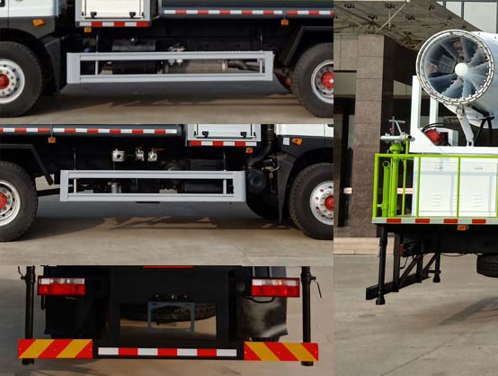 | 选装右侧车身结构;选装罐体后部带爬梯结构;仅采用4700,4500mm轴距底盘,整车长/轴距对应关系(mm):8860/4700,8660/4500;侧防护材料Q235,螺栓连接;后防护装置材料为Q235,焊接连接,断面尺寸为:140?0(mm),离地高度为:380mm,选装后防离地高度500mm;ABS系统生产厂家/型号:焦作博瑞克控制技术有限公司/J ABS;该车专用装置主要是喷雾机,用于降低空气中的灰尘,雾霾等现象. |