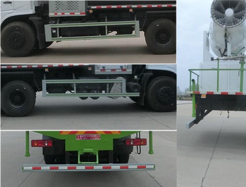 | 随底盘选装驾驶室,选装水箱外包围样式,选装上装发动机舱门样式,选装不同结构型式的雾炮。侧防护采用冷弯型钢/Q235-B,螺栓连接,后防护采用冷弯型钢/Q235-B,螺栓连接,后防护截面高度尺寸120mm, 截面宽度尺寸50mm,下边缘离地高度500mm。ABS型号/生产厂家:3631010-C2000/东科克诺尔商用车制动系统(十堰)有限公司。该车用于城市或建筑工地的降尘作用,主要专用装置为水箱和雾炮。车长/轴距/后悬对应关系为:10630/4350+1350/3490,10950/4750+1350/3410,11690/5400+1350/3500,11880/5700+1350/3390,11880/5900+1350/3190. |