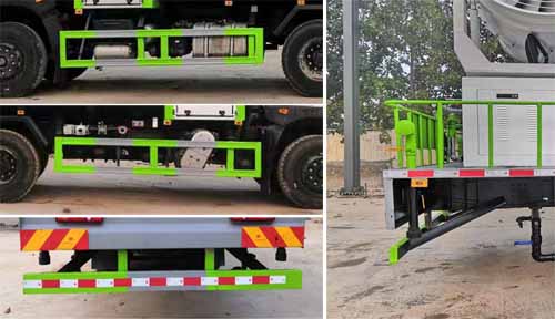 | 该车主要装置是喷雾装置,用于降低空气中的灰尘,雾霾等现象.整车长(mm)/前悬(mm)/后悬(mm)对应关系为:10370/1250/3420,10370/1450/3220,10650/1450/3500;侧,后防护装置材料为Q235;侧、后防护连接方式均为焊接连接;后部防护断面尺寸(宽赘?60?20(mm),后部防护离地高度(mm):400;仅采用4350+1350轴距底盘.随底盘选装驾驶室;选装喷雾机及摆放样式.ABS型号及生产厂家为:3631010-C2000/东科克诺尔商用车制动系统(十堰)有限公司,J ABS/焦作博瑞克控制技术有限公司. |