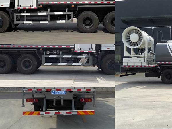 1、仅选用4350+1350mm,4750+1350mm轴距底盘改装 .2、轴距(mm)/后悬(mm)/整备质量(Kg)对应关系为:4350+1350/3490/14300;4750+1350/3090/14850。3、防护材料:Q235A碳钢,连接方式:左右侧面防护及后下部防护均采用螺栓连接,后部防护断面尺寸(mm):120?0,后部防护离地高度(mm):490.4、ABS型号/生产厂家:3631010-C2000/东科克诺尔商用车制动系统(十堰)有限公司。5、专用装置为抑尘雾炮,用于城市抑尘。6、选装雾炮样式,随底盘选装驾驶室。 |
