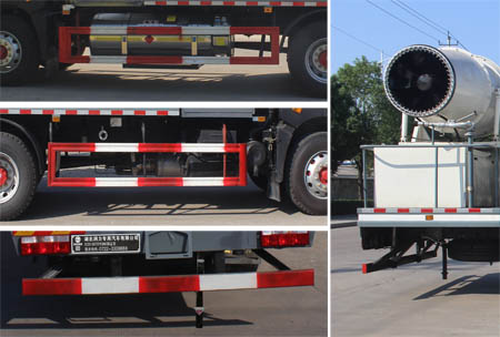 | 该车用途为抑尘降霾.主要装置为水罐、风机.随底盘选装后背式双气瓶安装.选装风机样式.整车长/轴距/前悬/后悬/后伸(mm)对应关系为:8600/4500/1260/2840/无后伸,9500/4500/1260/2840/900.侧、后防护材料为Q235B,侧、后防护与车架焊接连接.后部防护装置断面尺寸(宽赘?50?20(mm),后部防护离地高度:490mm.ABS系统生产厂家,型号 :焦作博瑞克控制技术有限公司,J ABS. |