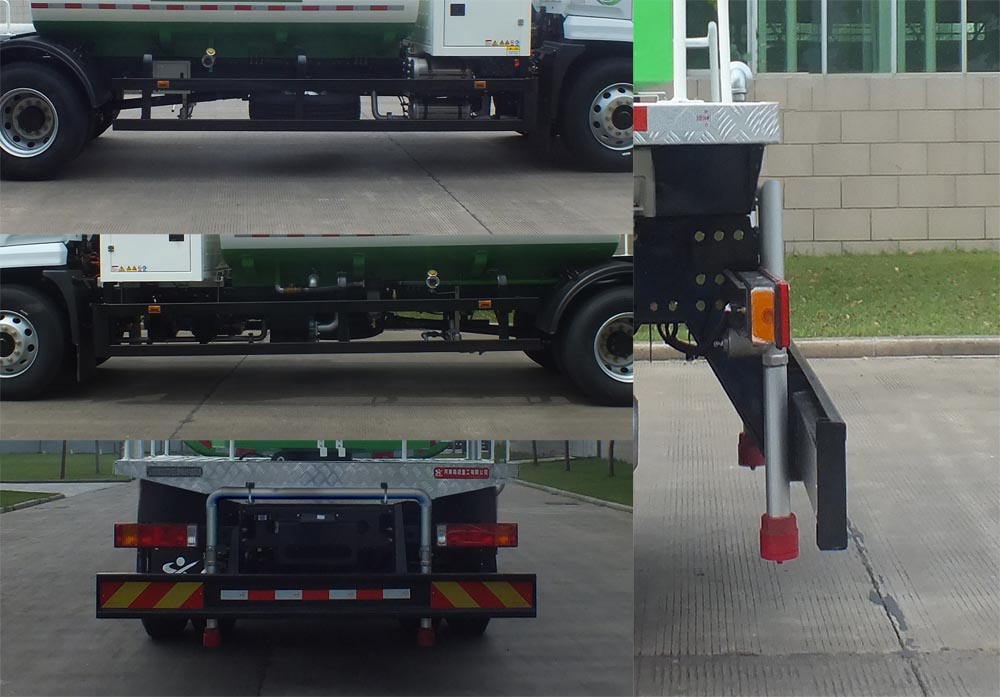 | 该车仅选用5300mm轴距.侧防护材料材质:Q345B,与罐体底架采用螺栓连接.后防护材料材质:Q345B,与车架采用螺栓连接,后防护截面尺寸:240?0mm,离地高度465mm.选装前鸭嘴、前对冲、后对冲、后部浇灌、后电动高炮装置;后伸805mm;储能装置种类/生产企业:磷酸铁锂电池/惠州亿纬锂能股份有限公司;电机种类/型号/生产企业:永磁同步电动机/TZ370XS-LKM1302/苏州绿控传动科技股份有限公司;电机额定功率/峰值功率(kW):120/185.ABS型号/生产厂家:CM4XL-4S/4M/广州瑞立科密汽车电子股份有限公司.该车主要功能:喷雾、除尘;主要固定装置:喷雾装置.选装后平台外观. |