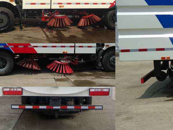 1,选装方形箱体或弧形箱体及箱体外观结构;选装吸盘中置或吸盘后置;选装单排或双排扫刷。选装后部结构;外观颜色可变化。选装方形箱体或弧向箱体时,外形长,外形高,前悬,后悬对应关系为(mm):弧形箱体/6700/2650/1130/1770;弧形箱体/6700/2650/1150/1750; 方形箱体/7100/2750/1130/2170;方形箱体/7100/2750/1150/2150。2,侧防护由车辆两侧专用作业装置替代。后防护采用冷弯型钢/Q235,焊接,截面高120mm,截面宽50mm,下边缘离地高400mm。3,随底盘选装驾驶室;ABS厂家及型号:襄阳东风隆诚机械有限责任公司/ABS/ASR-24V-4S/4M。 |