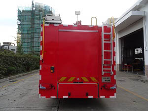 罐体总容积为4.914立方米,水罐容积:4.7立方米,水罐尺寸:2130?492?550mm,A类泡沫液罐容积:0.214立方米,A类泡沫液罐尺寸:750?50?50mm。整体式侧后防护结构,后防护离地高度:465mm。前伸:550mm。ABS生产企业为KNORR,型号为0 486 106。主要专用装置有压缩空气泡沫系统、绞盘、照明系统。 |