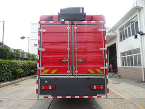 整体式侧后防护结构,后防护离地高度:465mm。后伸:160mm。ABS生产企业为威伯科汽车控制系统(中国)有限公司,型号为4460046300。主要专用装置有水带敷设和回收装置。 |