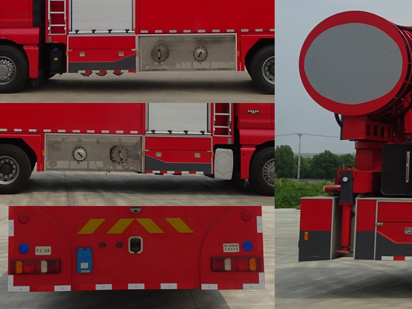整体式侧后防护结构,后防护离地高度:490mm。后伸:26mm。ABS系统型号为4460046300,生产企业为威伯科汽车控制系统(中国)有限公司。主要专用装置有车载式供水系统。 |