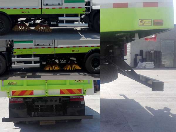 选用5100mm轴距底盘,随底盘选装驾驶室前脸以及保险杠,ABS型号为ABS-E 4S/4M,生产企业是威伯科汽车控制系统(中国)有限公司.侧防护由工作装置及部分防护栏组成,侧防护材料为铝合金或Q235A,连接方式:螺栓联接,后防护材料为Q235A,断面尺寸为100?5(mm),离地高度为404mm,选装卷盘装置,选装后喷雾装置,选装后洒水装置,厢体外观颜色及文字喷涂位置可变化.发动机ISD180 50,YC6JA180-50,ISD190 50,ISB170 50,ISB190 50,ISB210 50,YC4E160-56,EQH180-52净功率(kw)对应为:127,128,138,119,135,149,113,129. |