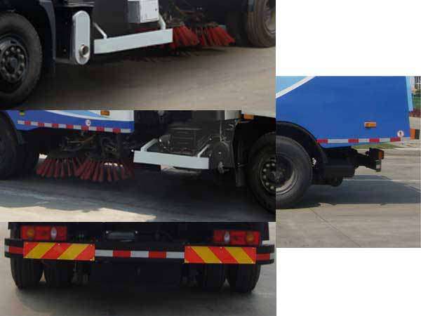 | 该车辆仅选用轴距为5200mm的底盘.ABS型号:ABS-E 4S/4M,生产厂家为威伯科汽车控制系统(中国)有限公司;随底盘选装气柜;选装另一款箱体外型;选装干湿两用扫刷、吸口及篷布,选装干湿两用专用装置时整备质量为12540kg,载质量为3265kg.该车的侧部装有专用装置扫刷代替侧防护;其后防护装置是由Q235钢板加工而成,通过高强度螺栓与车架连接在一起,后防护装置的断面尺寸是160?5mm,其最大离地高度为520mm. |