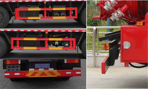 ABS型号:3631010-C2000;ABS生产企业:东科克诺尔商用车制动系统(十堰)有限公司;选装描述:随底盘选装驾驶室,选装罐体后部样式;侧后防护情况:侧、后防护材料均为Q235碳钢,连接方式:螺栓连接。后防护截面尺寸(mm)200?0,下边缘离地高480mm;罐体有效容积(立方米)、罐体外形尺寸(mm):污水罐有效容积14.6立方米,介质:液态污物,密度:800千克/立方米;清水罐有效容积11.68立方米,介质:水,密度:1000千克/立方米,罐体尺寸为(直段长字本?(mm):7100?350(前部3150mm为清水罐,后部3950mm为污水罐);专用功能及装置:该车用于清洗吸污,主要专用装置为罐体及清洗吸污装置;其他说明:两罐独立,且不能同时满载,清洗功能时用清水罐,吸污功能时用污水罐,卸料方式:举升后卸; |