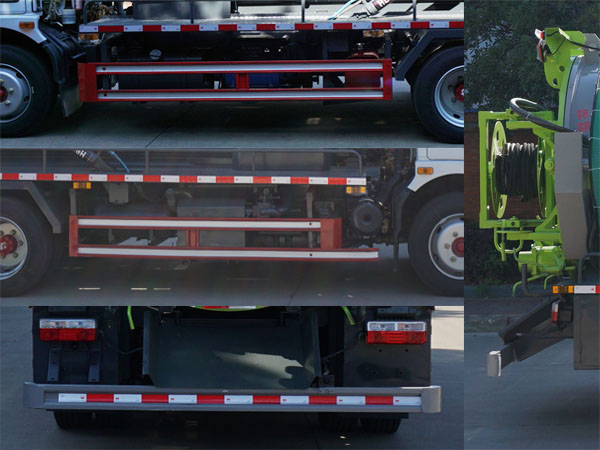 ABS型号:ABS/ASR-24V-4S/4M;ABS生产企业:襄阳东风隆诚机械有限责任公司;选装描述:选装侧部结构.随底盘选装驾驶室.选装ETC车载装置.采用3800(mm)轴距底盘;所用材料材质、连接方式以及后部防护装置的主要尺寸参数(断面尺寸和离地高度):防护材料:Q235,连接方式:左右侧面及后下部防护均采用焊接连接,后部防护装置断面尺寸(宽赘?50?40(mm),后部防护离地高度(mm):450(mm);罐体有效容积(立方米)、罐体外形尺寸(mm):污水罐体有效容积:5.25立方米,介质:液态污物, 清水罐有效容积:2.1立方米,介质:水.罐体外形尺寸(直段长字本?(mm):4300?600, 其中罐体前段为清水罐(直段长1300mm).清水罐和吸污罐为两个独立罐体,清洗功能时用清水罐,吸污功能时用污水罐,清洗吸污两种功能不能同时使用,且不能同时满载.;专用功能及装置:该车主要用于城市各种输送管道(堵塞物)疏通工作并具有举升功能;主要装置为罐体; |