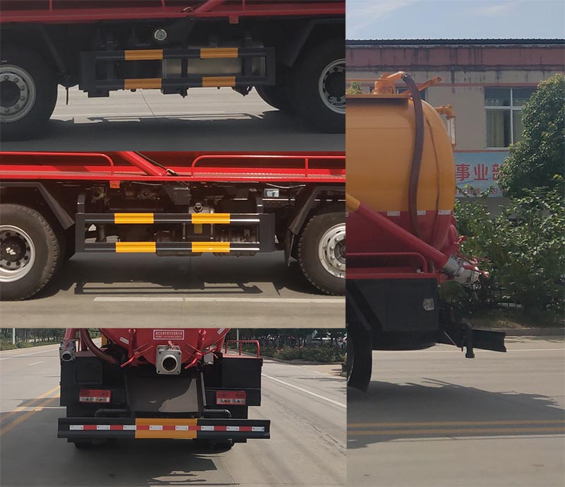 ABS型号:CM4XL-4S/4M;ABS生产企业:生产厂家为广州瑞立科密汽车电子股份有限公司;选装描述:选装电子高炮,随底盘选装驾驶室新前格栅新logo;侧后防护情况:侧防护材料Q235,螺栓连接;后防护材料Q235,焊接连接,断面尺寸210mm?0mm.下边缘离地高490mm;罐体有效容积(立方米)、罐体外形尺寸(mm):罐体总长6000mm,罐体尺寸(直段长字本?(mm):5400?100,罐体前部为清水罐,罐体后部为污水罐,污水罐(直段长字本?(mm):3000?100,污水罐有效容积:9.58立方米;清水罐(直段长字本?(mm):2400?100,清水罐有效容积:7.67立方米;清水罐和吸污罐为两个独立罐体,清洗功能时用水罐,吸污功能时用吸污罐,清洗吸污两种功能不同时使用.两罐不能同时满载;专用功能及装置:该车用途为清洗吸污,主要专用装置为真空泵;前伸尺寸:车前不装电子高炮时,车身长为9150mm;车前装电子高炮时,车身长为9620mm,前伸长470mm; |
