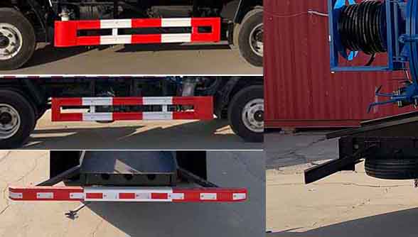 该车主要用于道路清洗、吸污,专用装置为水罐和吸污罐.仅选用3308mm轴距.罐体外形尺寸(直段长字本?(mm):3100?200,其中罐体前部1000mm为清水罐.清水罐:运输介质:水,密度1000千克/每立方米,载质量1200kg,罐体有效容积1.2立方米;污水罐:运输介质:液态污物,密度920千克/每立方米,载质量2310kg,罐体有效容积2.53立方米. 水罐和吸污罐为两个独立罐体,清洗功能时用水罐,吸污功能时用吸污罐,清洗吸污两种功能不同时使用,两罐不能同时满载.侧、后防护材料为Q235,连接方式均为螺栓连接,后部防护装置断面尺寸(宽赘?50?00(mm),后部防护离地高度:480(mm).ABS型号/厂家:ABS/ASR-12V-4S/4M/襄阳东风隆诚机械有限责任公司.随底盘选装驾驶室.选装侧面及后部外形样式. |