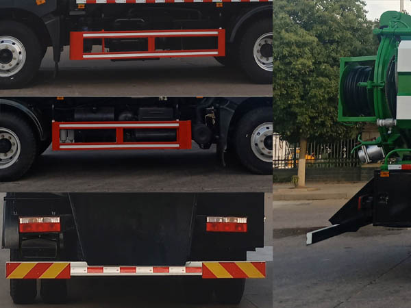 扩展后盖结构;选装顶部和后部吸污口结构;该车专用装置为清水罐和吸污罐,主要用于城市管网的清洗和疏通;清水罐和吸污罐为两个独立罐体,清洗功能时用水罐,吸污功能时用吸污罐,清洗吸污两种功能不能同时使用,两种罐体不能同时满载;罐体带有举升功能;吸污罐有效容积7.21立方米,外形长/轴距/吸污罐罐体尺寸(直段长字本?(mm)分别为:7250/3950/3900?600,7800/4500/4400?550;清水罐有效容积为3立方米,清水罐截面为多边形组成,外形长/轴距/清水罐罐体尺寸(直段长卓碜高)(mm)分别为:7250/3950/3400?80?000,7800/4500/3900?80?000;侧防护材料Q235,螺栓连接;后下部防护材料Q235,焊接连接,后部防护装置断面尺寸(宽赘?50?20(mm),后部防护离地高度(mm):440(mm);ABS系统型号/生产厂家 :J ABS/焦作博瑞克控制技术有限公司. |