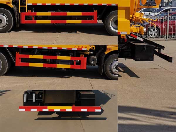 随底盘选装驾驶室。罐体外形尺寸(直段长字本?(mm):4000?600(前部1000mm为清水罐,后部3000mm为污水罐)。污水罐载质量为4750kg,有效容积:6.2立方米;清水罐载质量为2500kg,有效容积:2.5立方米.清水罐和吸污罐为独立罐体,清洗功能时用水罐,吸污功能时用吸污罐, 污水罐和清水罐不可同时满载。侧防护采用冷弯型钢/Q235,螺栓连接。后防护采用冷弯型钢/Q235,焊接连接。后防护截面高度尺寸120mm,截面宽度尺寸50mm,下边缘离地高度430mm。采用3800轴距底盘.ABS型号/厂家:ABS型号:ABS/ASR-24V-4S/4M,厂家:襄阳东风隆诚机械有限责任公司。专用装置为罐体,高压泵等,主要用于清洗吸污。随底盘选装驾驶室。 |