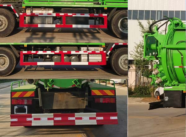 随底盘选装半高顶驾驶室,选装昼间行驶灯,选装油浴式空滤器;选装罐体前部带副发动机,选装罐体两侧和后部不同管道布置;ABS系统型号为446 004 6300,生产企业为威伯科汽车控制系统(中国)有限公司;仅采用轴距(mm):1800+4600+1350,1800+4575+1400;该车专用装置主要为污水罐和清水罐,用于下水道排污及疏通;罐体尺寸(直段长字本?(mm):7150?350,罐体前部为清水罐,后部为污水罐,污水罐(直段长字本?(mm):4000?350,污水罐有效容积:14.74立方米;清水罐(直段长字本?(mm):3150?350,清水罐有效容积:11.79立方米;清水罐和吸污罐为两个独立罐体,清洗功能时用水罐,吸污功能时用吸污罐,清洗吸污两种功能不同时使用,清水罐和吸污罐不能同时满载;侧防护和后防护材料Q235,侧防护螺栓连接,后防护焊接连接,后防护断面尺寸50?50mm,下边缘离地高460mm. |