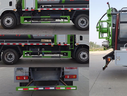 随底盘选装驾驶室;选装侧面工具箱样式,选装侧面宽体卷帘门结构,选装后部软管卷盘样式。污水罐载质量4295千克,罐体有效容积5.6立方米,罐体尺寸(长字本?(毫米):4200?400,4350?385。清水罐载质量3000千克,罐体有效容积3立方米,罐体尺寸(长卓碜高)(毫米)3850?50?80,4000?50?80。污水罐和清水罐为两个独立罐体,清洗吸污两种功能不同时使用,两个罐体不能同时满载。ABS型号及生产厂家为:3631010-C2000/东科克诺尔商用车制动系统(十堰)有限公司,J ABS/焦作博瑞克控制技术有限公司。侧防护采用冷弯型钢/Q235-B,螺栓连接;后防护采用冷弯型钢/Q235-B,螺栓连接。后防护截面高度尺寸120mm, 截面宽度尺寸50mm,下边缘离地高度390mm。该车用于城市下水道系统的清洗梳理工作,是由该车将清水运输到目的地进行清洗工作并同时将清洗后的污水吸收运输离开,主要专用装置为污水罐和清水罐及吸排系统。 |