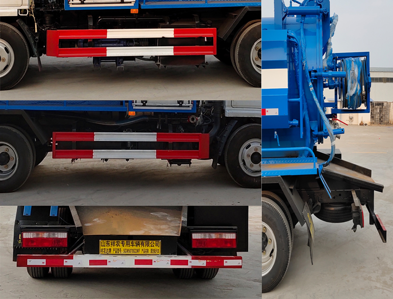 该车用途为吸污清洗,主要装置为罐体及泵.随底盘选装驾驶室,该车仅选轴距mm为:3308;污水罐有效容积:3.18立方米,罐体外形尺寸(直段长字本?(mm):3100?200,运输介质: 液态污物,密度:800千克/立方米;清水罐是不规则结构,在污水罐两侧对称结构,清水罐有效容积:0.9立方米,罐体外形尺寸(长壮ぶ嶙短轴)(mm): 2200?00?50,运输介质: 水,密度:1000千克/立方米;水罐和吸污罐为两个独立罐体,清洗功能时用水罐,吸污功能时用吸污罐,清洗吸污两种功能不同时使用,两个罐体不能同时满载;侧防护材质Q235,螺栓连接;后防护材质Q235,焊接连接,后防护截面高度尺寸120mm,截面宽度尺寸50mm,下边缘离地高度390mm;ABS型号/厂家:ABS/ASR-12V-4S/4M/襄阳东风隆诚机械有限责任公司.选装箱体样式. |