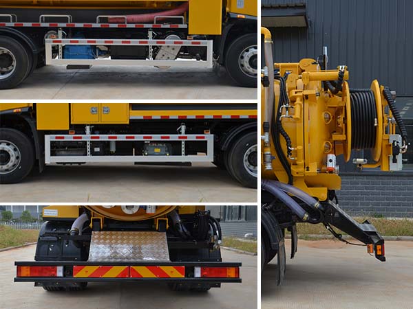 污水罐为圆形截面,罐体外形尺寸(直径字倍纬?(mm):Φ1410?300,有效容积:7.86立方米;清水罐是由2个相同的多边形罐体组成,单个罐体外形尺寸(上底+下底)赘咦长(mm):(775+584)?206?670,有效容积5.58立方米。清水罐和污水罐不能同时满载。整车仅采用轴距为4500mm原底盘。主要专用装置为真空抽吸及高压清洗系统。防护栏的材料材质:Q235;防护栏安装采用螺栓联接;后护栏截面尺寸/离地高(mm):110?40/470。装有ABS,ABS型号/生产厂家:3631010-C2000/东科克诺尔商用车制动系统(十堰)有限公司,ABS 8/东科克诺尔商用车制动系统(十堰)有限公司,4460046450/威伯科汽车控制系统(中国)有限公司.随底盘选装车头样式。随底盘选装尾灯。 |