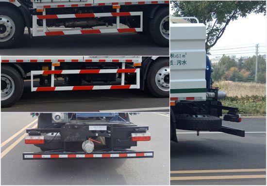 1,该车专用装置由污水罐和清水罐组成,用于下水道排污及疏通;污水罐体外形尺寸(长壮ぶ嶙短轴)(mm): 3100?850?400,污水罐有效容积:6.1立方米,运输介质为液态污物,介质密度为800千克/立方米。清水罐是由2个相同的不规则罐体组成,单个罐体外形尺寸长: 2860mm,运输介质为液态水,介质密度为1000千克/立方米。有效容积2.6立方米;2,清水罐和吸污罐为两个独立罐体,清洗功能时用水罐,吸污功能时用吸污罐,清洗吸污两种功能不同时使用,清水罐和污水罐不能同时满载;3,侧防护材质Q235,螺栓连接;后防护材质Q235,螺栓连接,后防护截面尺寸120mm?0mm,下边缘离地高度380mm,ABS型号/厂家:ABS型号:ABS/ASR-24V-4S/4M,厂家:襄阳东风隆诚机械有限责任公司;4,仅选用3800轴距改装。随底盘选装前面罩,前保险杠,前组合灯具,后视镜,前雾灯 |