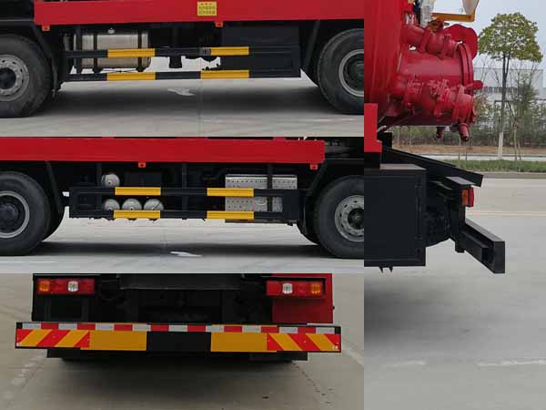 1、该车用于清洗吸污,主要专用装置为真空泵和罐体。罐体尺寸为(直段长字本?(mm):7100?350,其中罐体前端为清水罐(直段长3100mm);后端为污水罐(直段长4000mm)。两罐独立,且不能同时满载。清洗功能时用清水罐,吸污功能时用污水罐。污水罐有效容积14.74立方米,介质:液态污物,密度:800千克/立方米;清水罐有效容积11.79立方米,介质:水,密度:1000千克/立方米。2、侧、后防护材料均为Q235,焊接。后防护截面尺寸200?0mm,下边缘离地高500mm。选装罐体顶部护栏样式,选装侧面清洗管,选装后罐口液压开启样式,选装后部阀门,选装后部清洗管卷盘样式,后部箭头灯为选装件。3、仅采用轴距(mm):1800+4575+1400。随底盘选装驾驶室。ABS系统生产厂家及型号分别为:西安正昌电子股份有限公司(型号:ZQFB-V),广州瑞立科密汽车电子股份有限公司(CM4XL-4S/4M)。 |