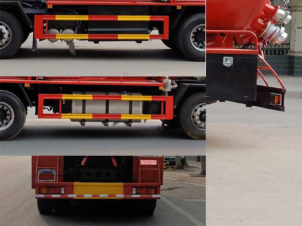 随底盘选装驾驶室,选装后盖结构样式及箭头灯;仅选用轴距(mm):1995+4600+1350;ABS生产厂家:东科克诺尔商用车制动系统(十堰)有限公司,型号:3631010-C2000;该车专用装置主要为污水罐和清水罐,用于下水道排污及疏通;罐体尺寸(直段长字本?(mm):7100?300,罐体前部为清水罐,后部为污水罐,污水罐(直段长字本?(mm):3950?300,污水罐有效容积:14.17立方米;清水罐(直段长字本?(mm):3150?300,清水罐有效容积:11.34立方米;清水罐和吸污罐为两个独立罐体,清洗功能时用水罐,吸污功能时用吸污罐,清洗吸污两种功能不同时使用,清水罐和吸污罐不能同时满载;侧防护和后防护材料Q235,侧防护螺栓连接,后防护焊接连接,后防护断面尺寸50?00mm,下边缘离地高500mm. |