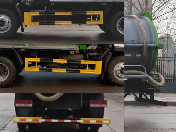 选装新前格栅及新logo;选装后部带卷盘结构时,后伸为380mm,不带卷盘结构时,后伸为0mm;该车专用装置主要为污水罐和清水罐,用于下水道排污及疏通;罐体尺寸(直段长字本?(mm):4650?750,罐体前部为清水罐,后部为污水罐,污水罐(直段长字本?(mm):2450?750,污水罐有效容积:5.64立方米;清水罐(直段长字本?(mm):2200?750,清水罐有效容积:4.5立方米;清水罐和吸污罐为两个独立罐体,清洗功能时用水罐,吸污功能时用吸污罐,清洗吸污两种功能不同时使用,清水罐和吸污罐不能同时满载;仅采用3800mm轴距底盘;侧防护材料Q235,螺栓连接;后防护材料为Q235,焊接连接,截面尺寸为:120?0(mm),离地高度为:500(mm);ABS控制方式为4S/4M,ABS型号为CM4XL-4S/4M,生产厂家为广州瑞立科密汽车电子股份有限公司 |