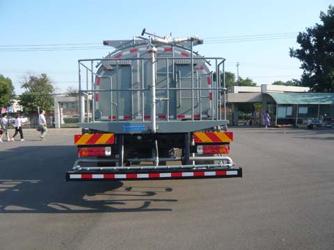 罐体有效容积10立方米.介质:水.罐体长3800mm,长轴2360mm,短轴1525mm,侧后防材料材质:Q235.侧防护支撑座与副梁焊接,侧防护与支撑座螺栓连接,后防护与车架螺栓联接,后防护断面尺寸:120mm?0mm,后防护离地高度:480mm.ABS系统型号为CM4XL,生产企业为长春瑞立科密汽车电子有限公司.该车智能水炮和射雾器均为选装(可分别选装,可同时选装),射雾器选装不影响整车长度和宽度,选装智能水炮时;总长(mm)/前伸(mm)/前悬(mm)/轴距(mm)/后悬(mm)/接近角(?对应关系为:9180/400//1400/4500/2880/12;无智能水炮时:总长(mm)/前悬(mm)/轴距(mm)/后悬(mm)/接近角(?对应关系为8780/1400/4500/2880/15;装备限速装置,限速89km/h.随底盘选装前围和灯具,选装宽体保险杠,脚踏板.选装放大号牌板、提示语牌板、作业警示灯、手持水炮中置、手持水炮侧置、前喷、后洒、对冲中置、对冲后置、前喷、上喷雾、下喷雾、自吸型式、自回水、花洒、消防接头、罐体左后放水,罐体中后放水、绿化浇灌系统、低压卷盘总成等 |