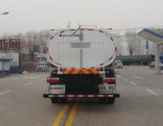 加装罐体及清洗装置,用于清理路面或管道沉积物或清洗机械表面;仅选用4500mm轴距;配置A:罐体有效容积为10.8立方米,罐体尺寸(长壮ぶ嶙短轴)(mm):4900?340?340,整车整备质量(Kg)为:7510,配置B:罐体有效容积为:10.4立方米,罐体尺寸(长壮ぶ嶙短轴)(mm):4200?340?340,整车整备质量(Kg)为:7880;选装前置高压清洗装置时,整车外形尺寸为9320?500,2550?200,前伸为:960mm.选装前部喷头为万向鸭嘴喷头,选装中置对冲喷水装置,选装后部加装箭头式指示灯,选装后部平台样式及护栏高度;选装罐体后封头款式;选装30米雾炮;选装外观喷涂;选装前护栏清洗装置,前伸量为1200mm;侧后防护装置材料均为:Q235,侧防护装置与车架连接方式为螺栓连接,后防护装置与车架连接方式为焊接,后防护装置截面尺寸为:120?8mm,离地高度480mm;ABS系统生产厂家/型号:焦作博瑞克控制技术有限公司/J ABS. |