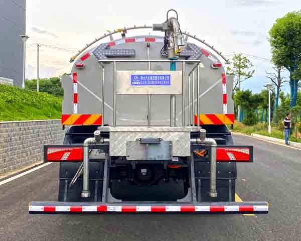 ABS型号:ABS-E;ABS生产企业:威伯科汽车控制系统(中国)有限公司;储能装置种类:磷酸铁锂蓄电池;储能装置生产企业:深圳市比亚迪锂电池有限公司(单体),汕尾比亚迪汽车有限公司(总成);选装部件名称及其相关描述:随底盘选装铝制轮辋、黑底LOGO;该车可选装后自动水炮,鸭嘴,对冲,高压清洗系统,小型喷洒系统,自吸,卷盘,后回水管路;所用材料材质、连接方式以及后部防护装置的主要尺寸参数(断面尺寸和离地高度):侧防护装置的材质为铝合金100,连接方式为螺栓连接;后部防护装置的材料为Q235,连接方式为螺栓连接,圆柱体,截面直径为120mm,离地高度为450mm;罐体有效容积(立方米)、罐体外形尺寸(mm):有效容积8.46立方米,罐体外形尺寸(长轴锥讨嶙长度)(mm): 2240?440?980;专用功能及装置描述:专业装置为水罐,喷洒装置及控制系统等,主要功能用于清洗作业;其他说明:配置前喷水架时,前伸量为1010mm,整车长为9140mm;选装不带前喷水架时整车长为8130mm;质量参数变化在3%内可忽略不计,驱动电机类型:永磁同步电动机,额定功率150kW,峰值功率180kW,整备质量与额定载质量对应关系:9745/8125,9810/8060; |